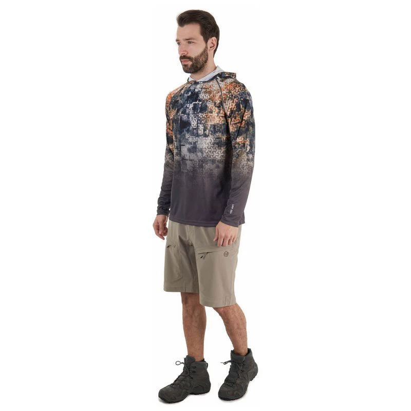 FHM Mark Hoodie fishing shirt protects you against UV-radiation while fishing, boating, or anywhere you need protection from the sun. Made from breathable, quick-dry fabric that keeps you cool in hot weather. The long sleeves provide a strong cooling effect as you perspire, ensuring enjoyable fishing. The sleeves feature thumb loops that can be used to ensure that the sleeves stay put. Comfortable thin material! The hood provides added protection for your head.