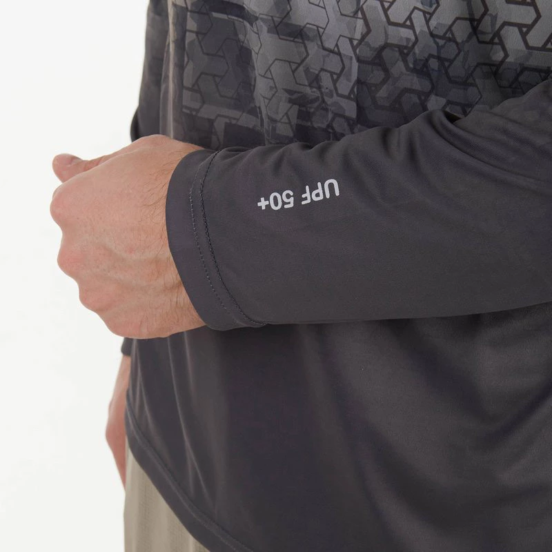 The hydrophobic coating of the Mark material wicks sweat away from the skin to the outside of the shirt. The synthetic materials allow air to pass through and the hydrophobic quality of the fibers wicks away sweat allowing it to evaporate more efficiently. During the manufacturing process, the fibers are treated with an anti-UV component. This technology ensures better protection against UV-radiation than treatment of the fabric after manufacturing. The material retains it sun protection factor even when wet. These shirts are great for fishing, paddling, hiking, rowing, stand-up paddle boarding, cycling, and other outdoor activities, particularly water-based ones.