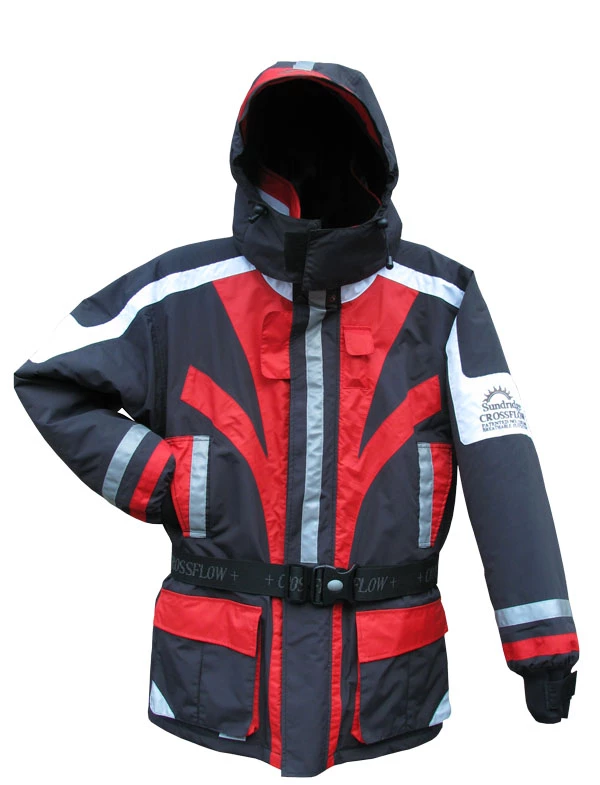 The Sundridge Crossflow flotation jackets are made from a technically advanced material that is both weather-resistant and breathable. The modern three-layered construction of the textile with special membrane keeps wind and rain on the outside, which means that the inside remains warm and dry. The hollow floating material breathes and the holes expand and contract, allowing air to circulate inside the garment to retain heat and removing moisture. Breathable Silcatex© protects, repels water, and transfers moisture away from the inside.